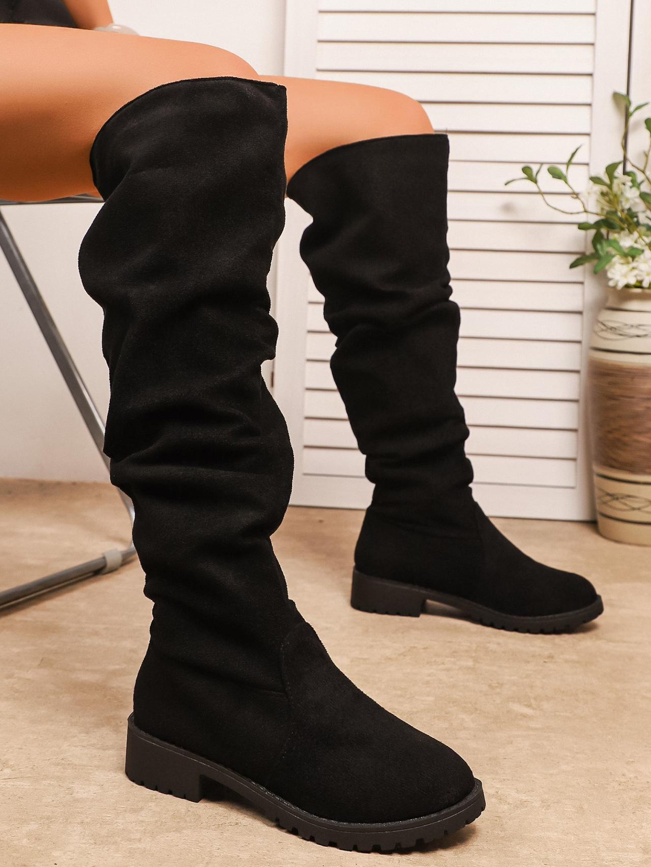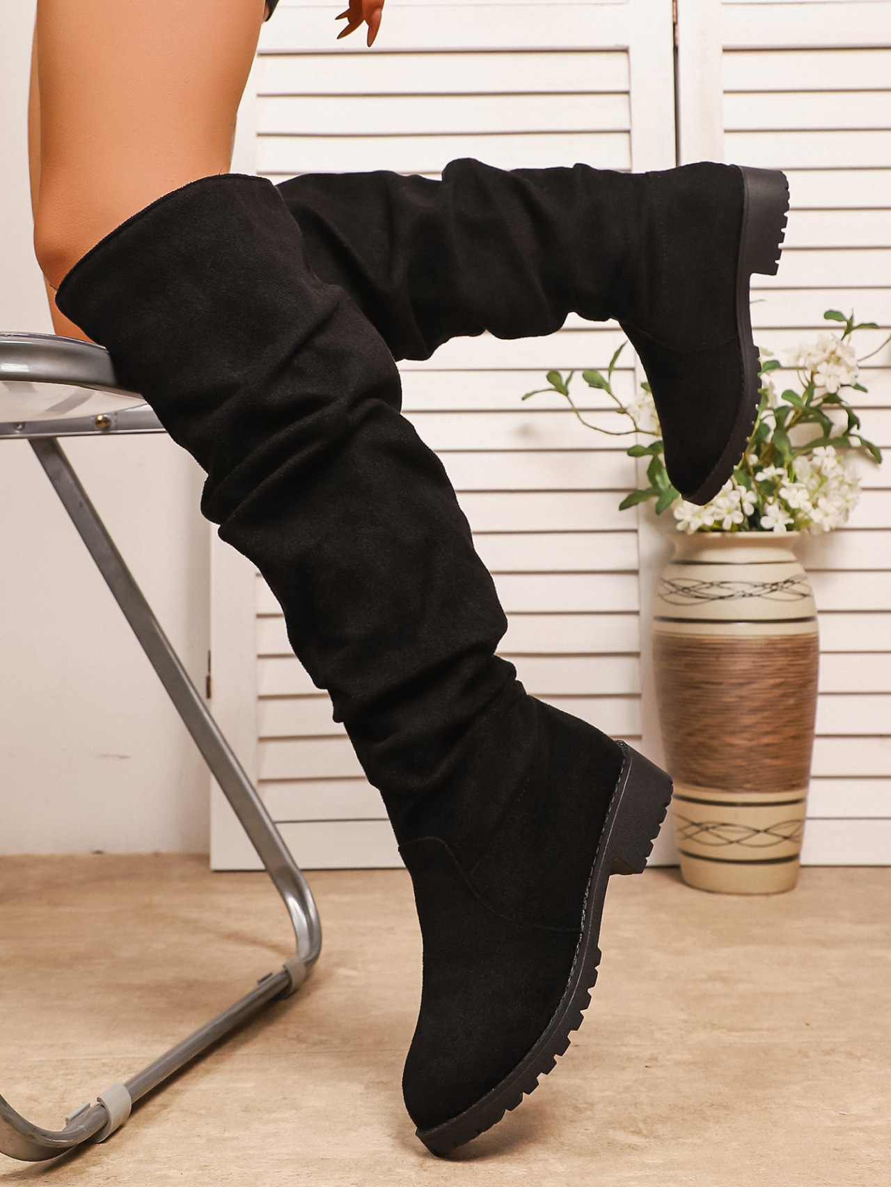 Fleece-lined Winter Low-heel Slip-on Over-the-knee Boots For Women