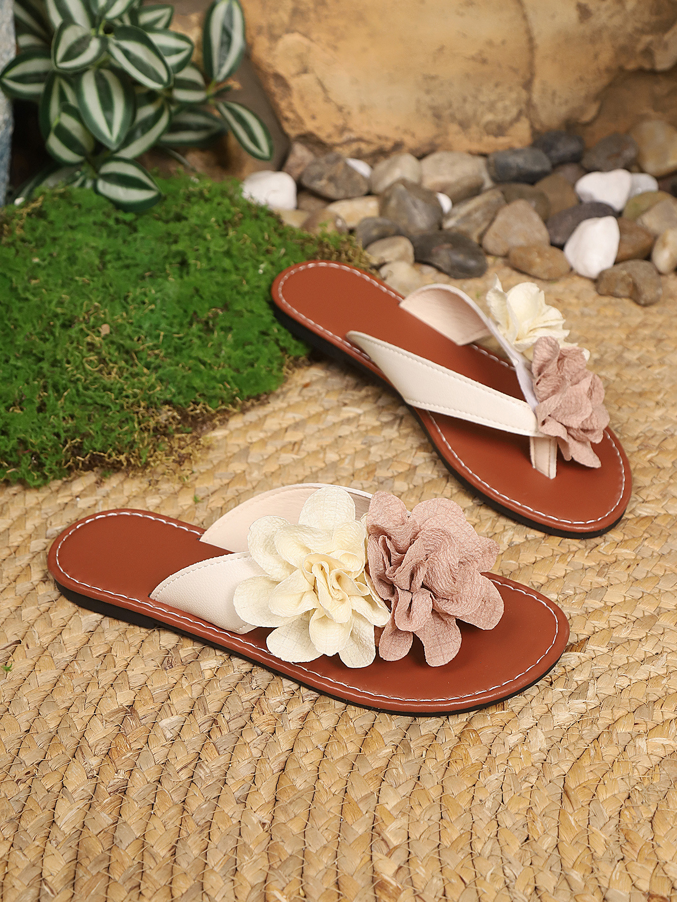 Flip Flop Open Toe Flat Sandals With Adjustable Strap And Two-Way Flower Design