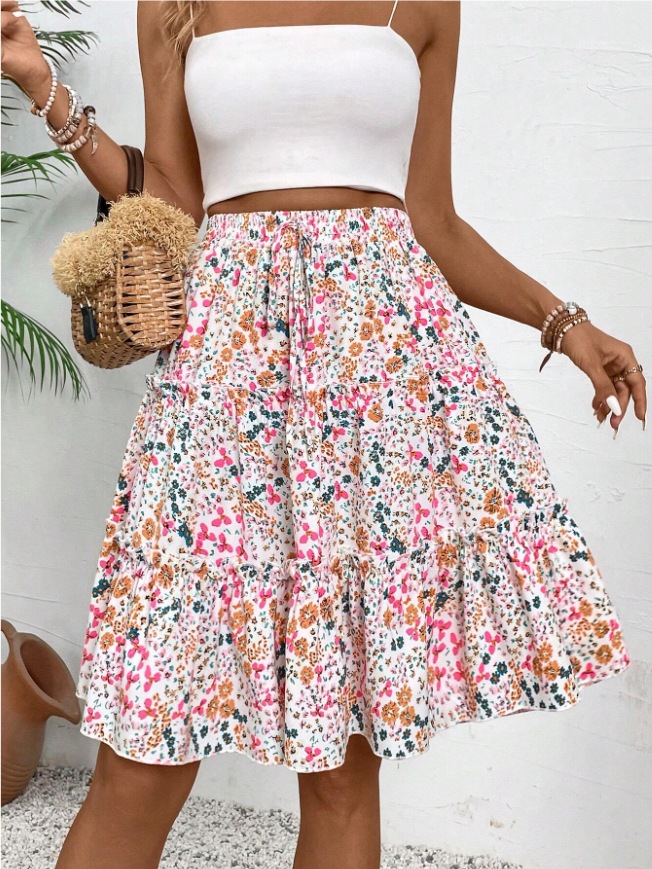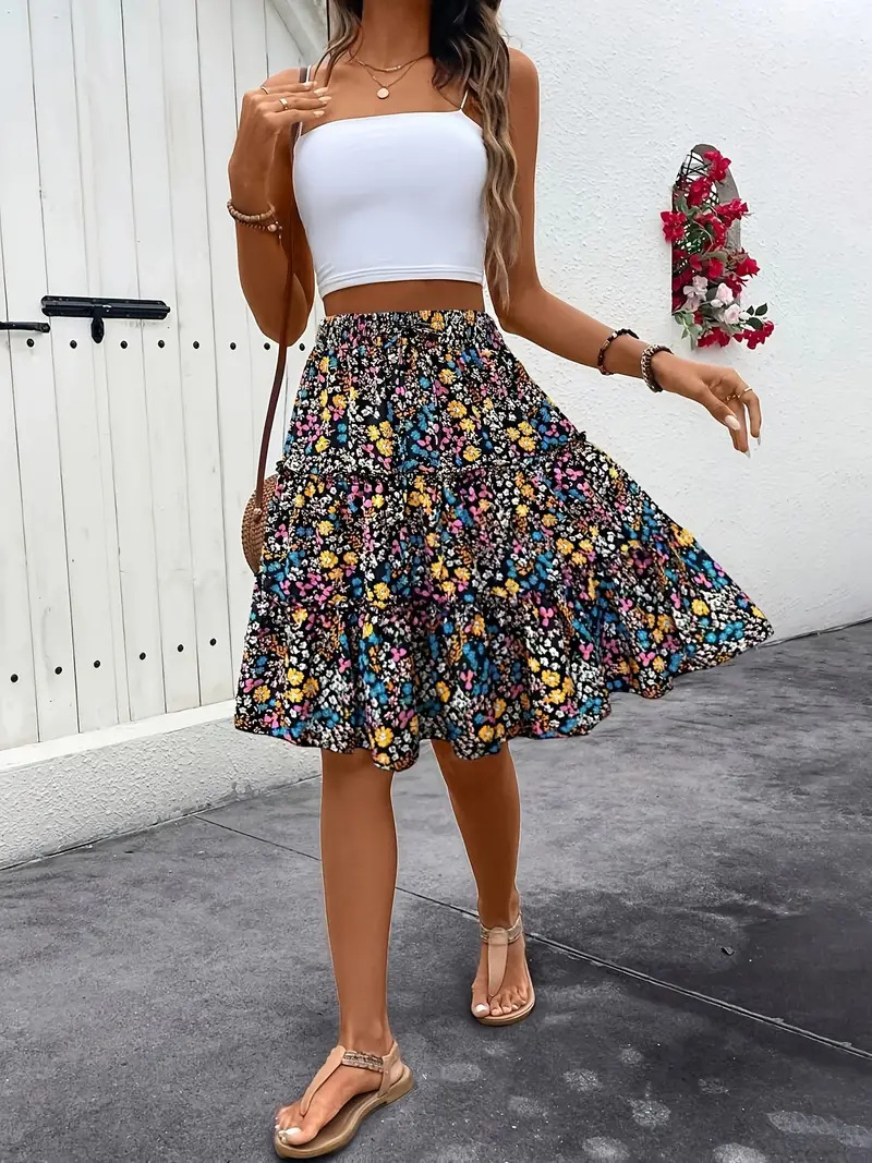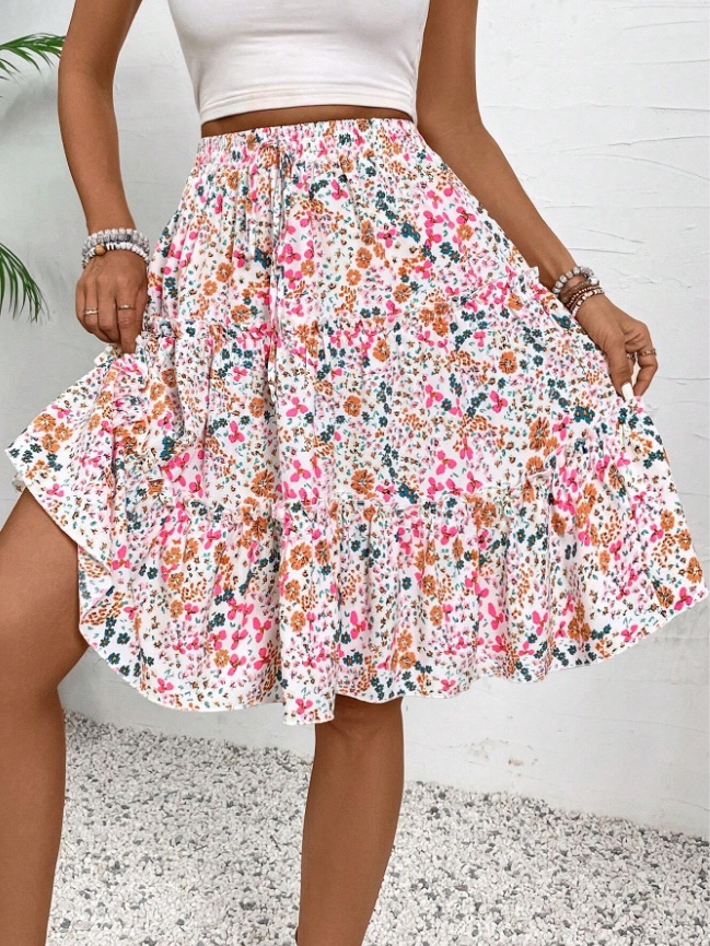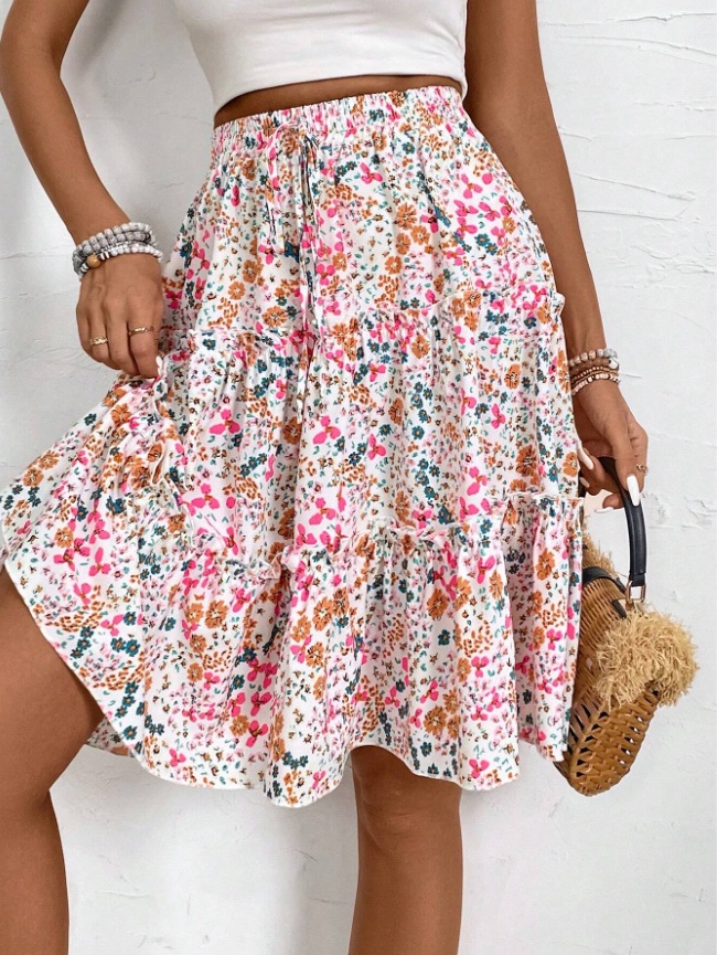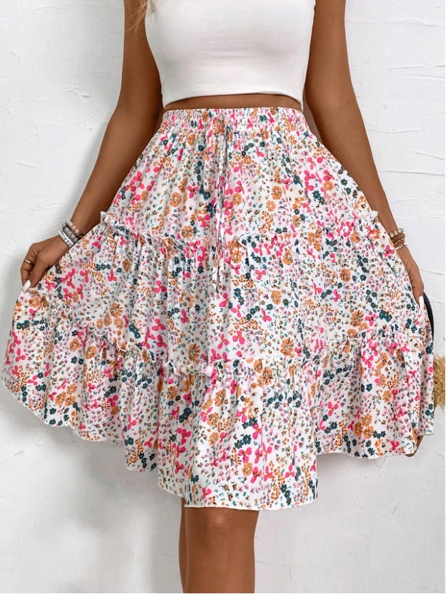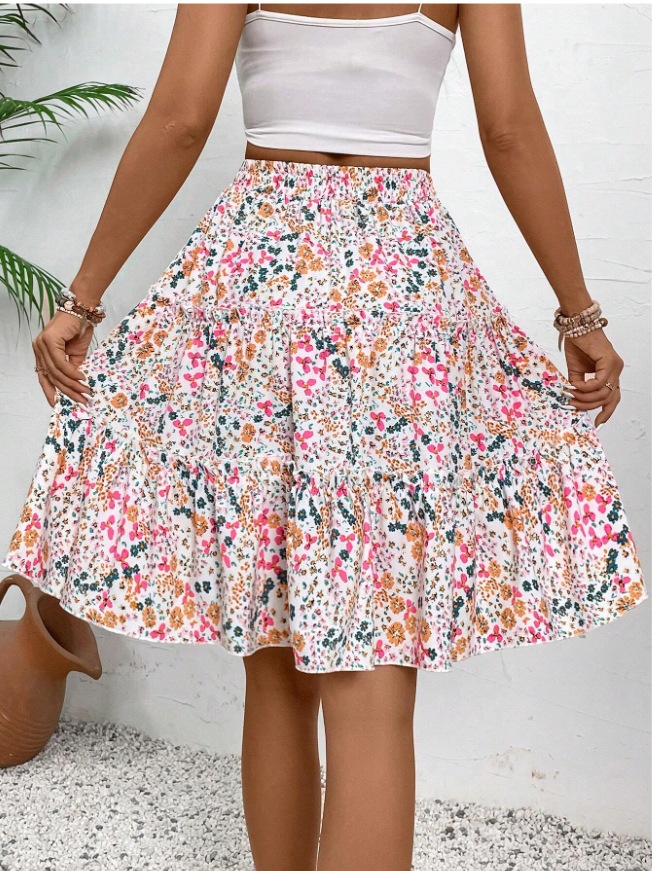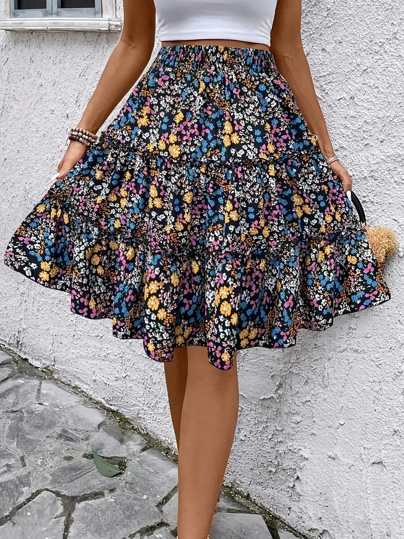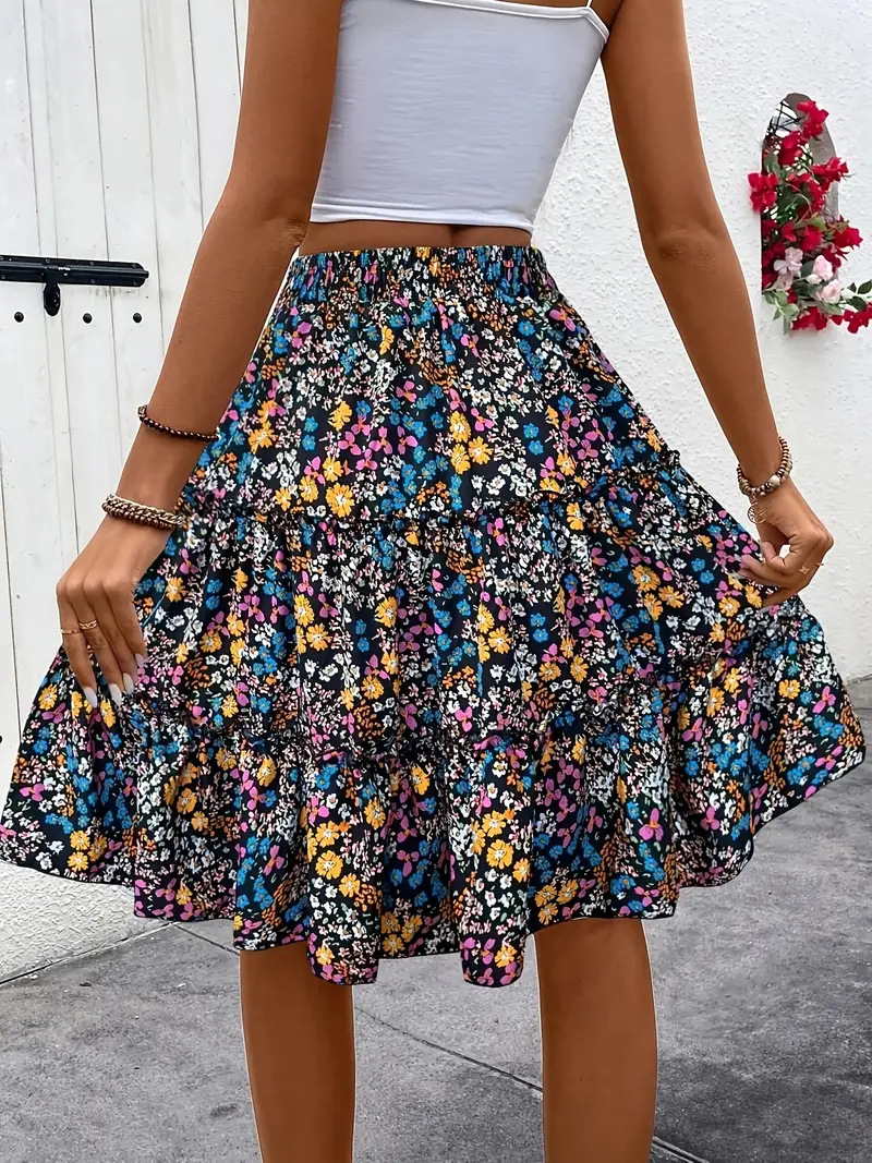 Floral Bohemian Ruffled Hem Skirt for Women